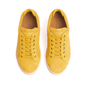 2. top and side view of yellow sneakers saffron small size shoes model from petitfour feeling good collection